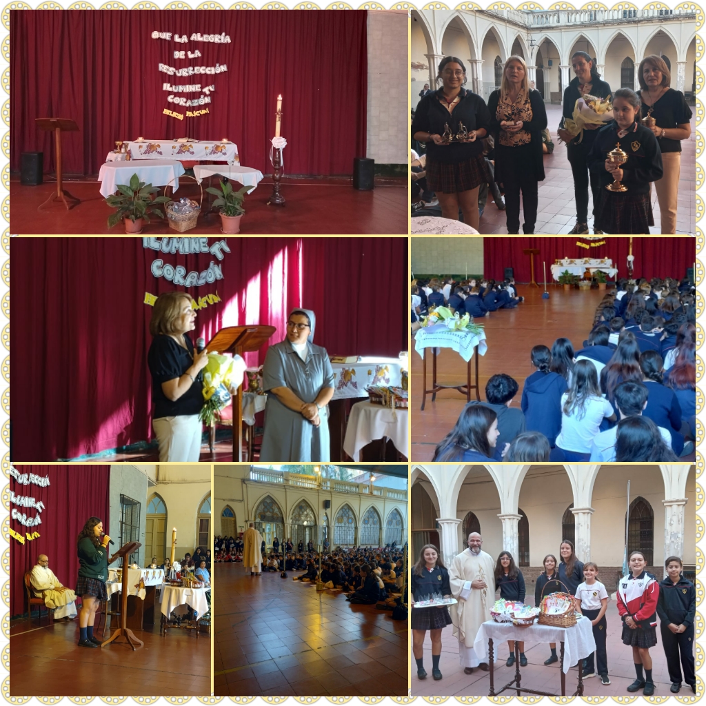 En esta semana tan especial, y en el marco de las celebraciones pascuales, nos reunimos hoy, alrededor de la Mesa del Altar, para compartir el gozo de la Resurrección de Cristo. El Nivel Secundario, junto al segundo ciclo de Nivel Primario, compartieron la Santa Misa, acompañados por docentes y religiosas. En esta celebración, festejamos también la jubilación de nuestra querida Miriam, quien con su dulzura y disposición permanente nos acompañó en la portería durante 23 años. ¡Bendecida sea esta nueva etapa de vida para Miriam!