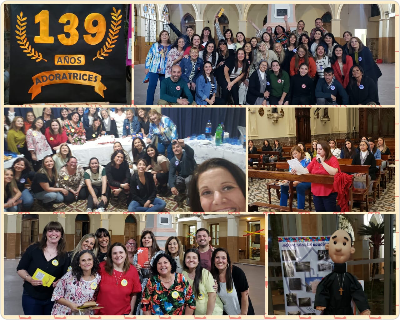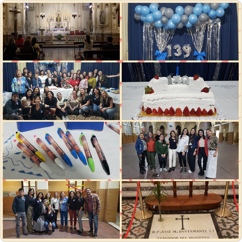 Las Hermanas, Directivos, Docentes y personal de Administración y Maestranza de nuestra institución, se reunieron en torno a la Eucaristía para celebrar un año más del colegio y de la congregación, agradeciendo todo lo recibido a lo largo de estos años. Luego de vivir un momento de adoración y oración en la iglesia, compartimos juegos, finalizando con un brindis y cantando el ¡Feliz cumpleaños a nuestro querido colegio!