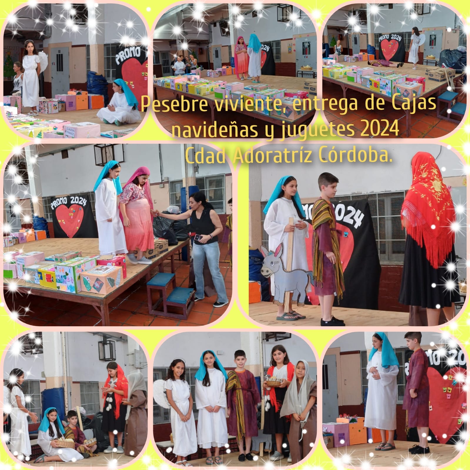 En la tarde de ayer pudimos acercar las cajas navideñas que con tanto amor completaron y decoraron nuestros estudiantes y sus familias. Llevamos el mensaje de «Dios con nosotros», mediante el pesebre viviente que representaron niños/as del colegio. Los juguetes donados por las familias de 4° y 6° grado fueron entregados a los niños/as de las familias del barrio. Agradecemos a toda la Comunidad Adoratriz su colaboración, en particular a las familias que nos acompañaron en esta jornada. Extendemos nuestro agradecimiento a la comunidad de la Parroquia San Pablo, que nos abre sus puertas para acercarnos a nuestros amigos de Villa El Chaparral. Podran visualizar vìdeos de estos momentos en nuestras redes sociales Facebook e Instagram, gracias.
