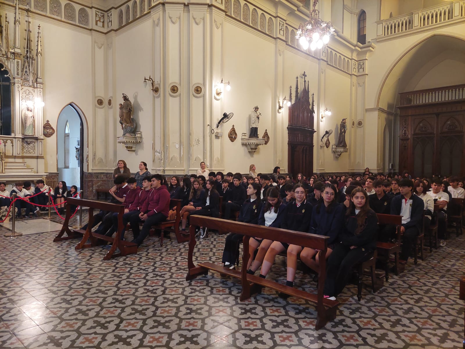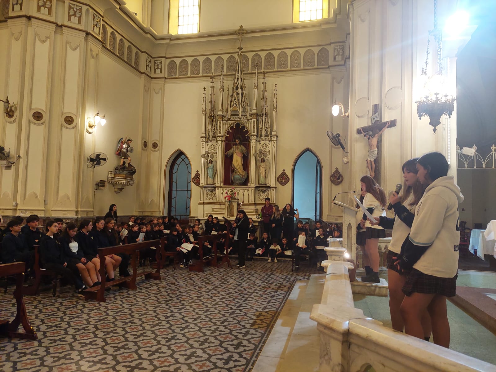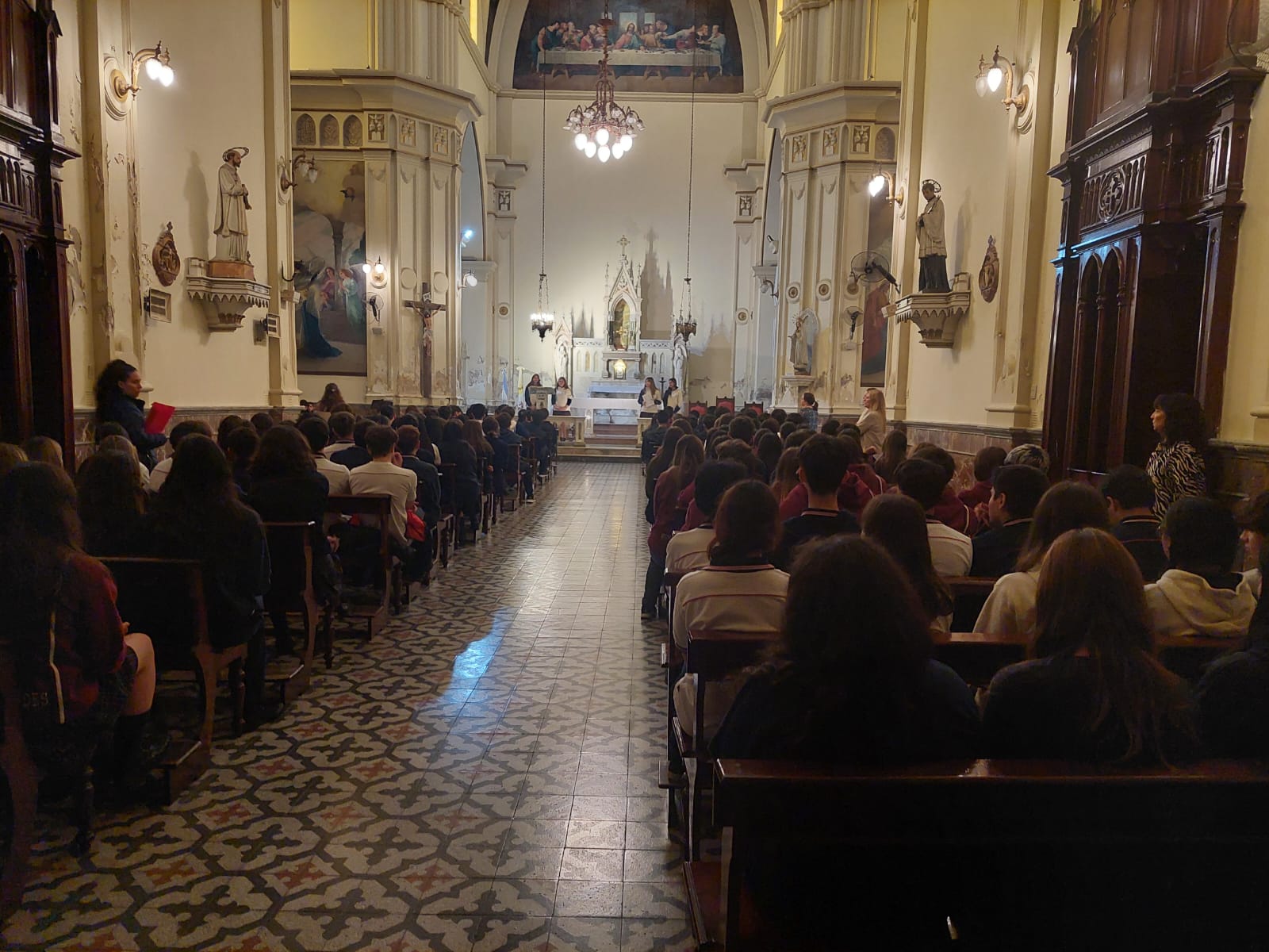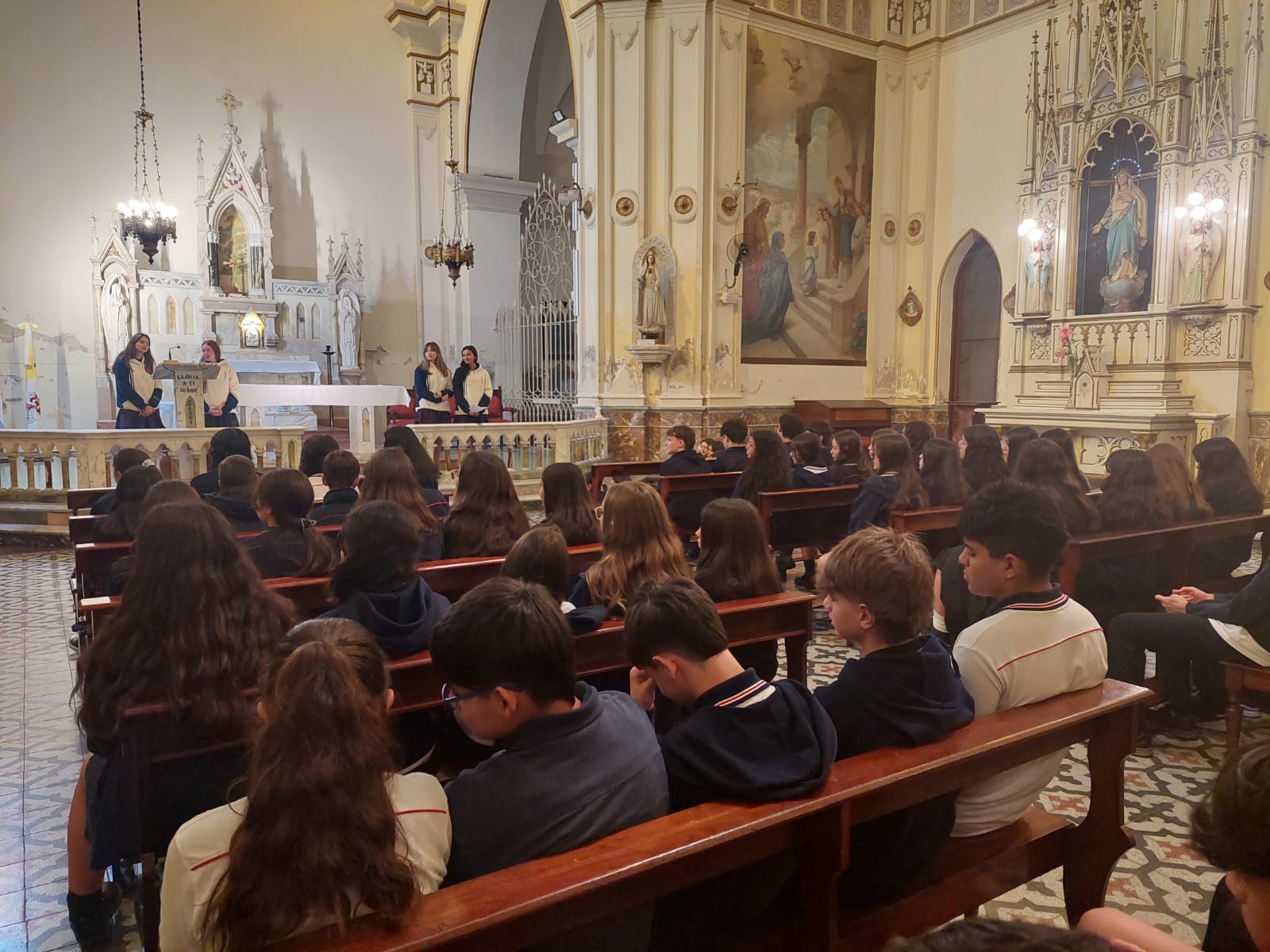 Este 25 de marzo, la Comunidad educativa Adoratriz en la iglesia, se unió en la oración del Ángelus que nos recuerda la ENCARNACIÓN del Niño Dios y el primer latido del Sagrado Corazón de Jesús. El Ángelus es una manera de consagrar el día entero a Dios y a la Santísima Virgen… es un «TE AMO MAMÁ» dirigido a María.
