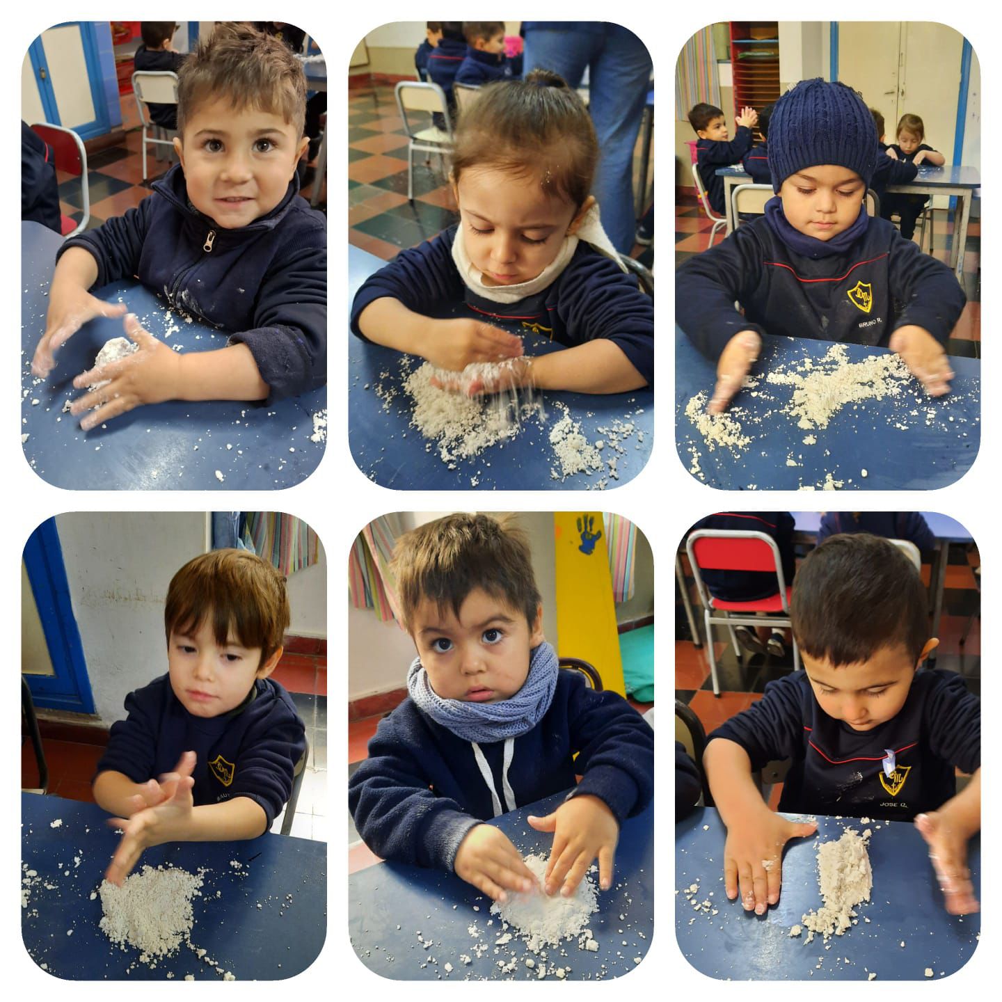 Le cantaron al invierno, dibujaron copitos de nieve ❄️❄️, bailaron al ritmo de la canción Manitos al sol» de Magdalena Fleitas y experimentaron una propuesta sensorial, jugando con nieve artificial 🌨️ que prepararon las señoritas. ¡Se divirtieron mucho, explorando, modelando, desarmando y haciendo nevar ❄️⛄!