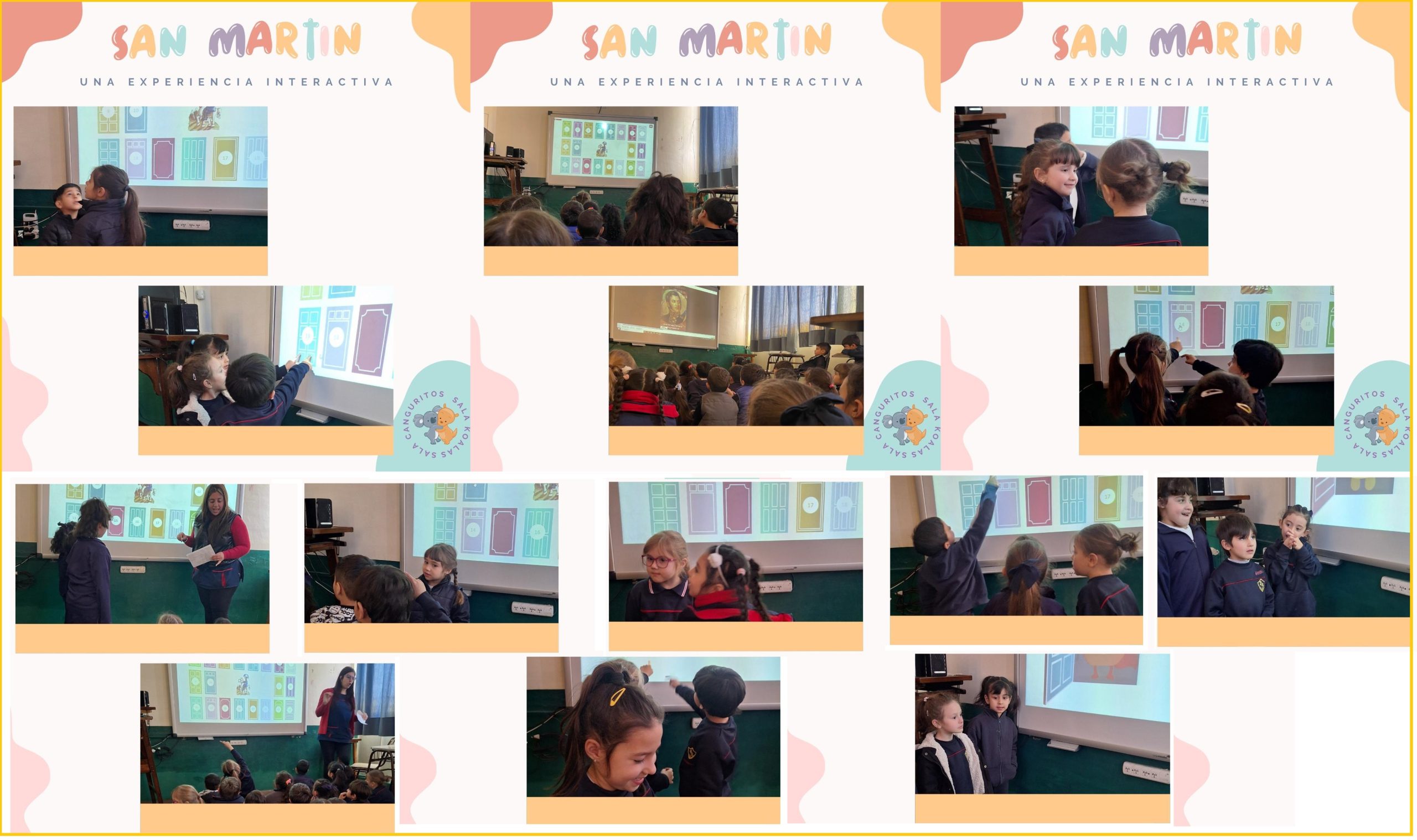 Vivimos una experiencia única: el mismísimo General San Martín nos visitó para contar su historia. Después de escuchar sus aventuras, salas de 5 años Koalas y Canguritos realizamos un juego interactivo. Fuimos abriendo «puertas» que revelaban momentos clave de la vida del prócer y respondiendo a las preguntas.