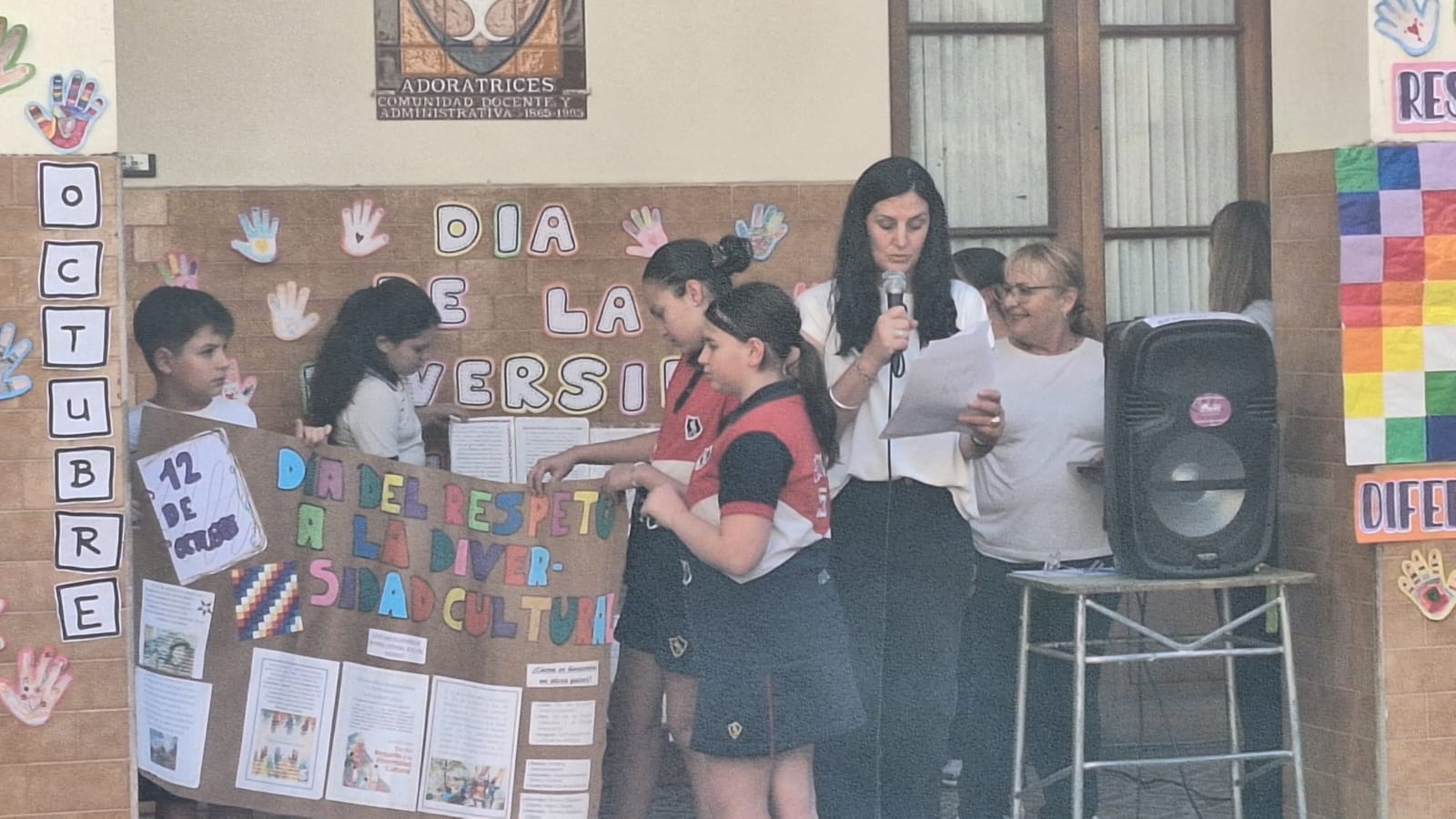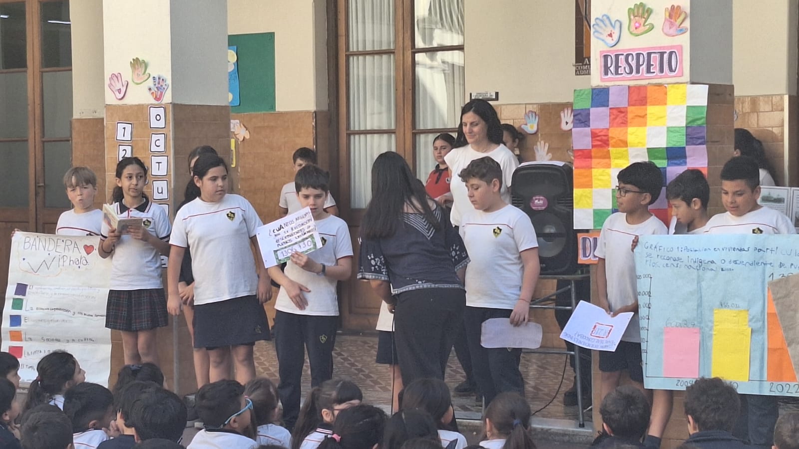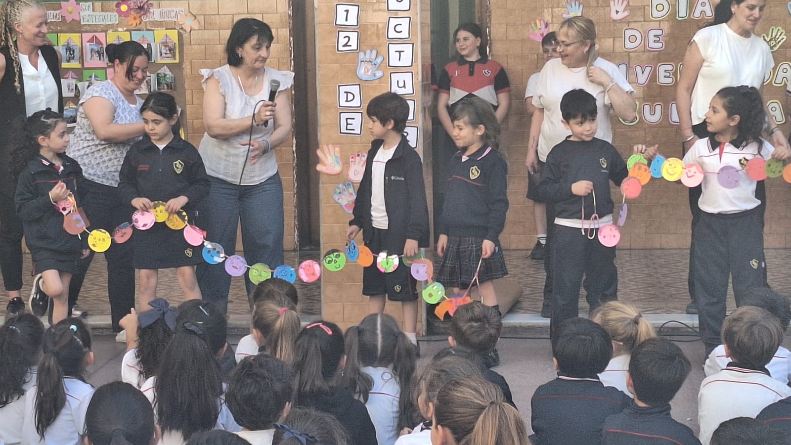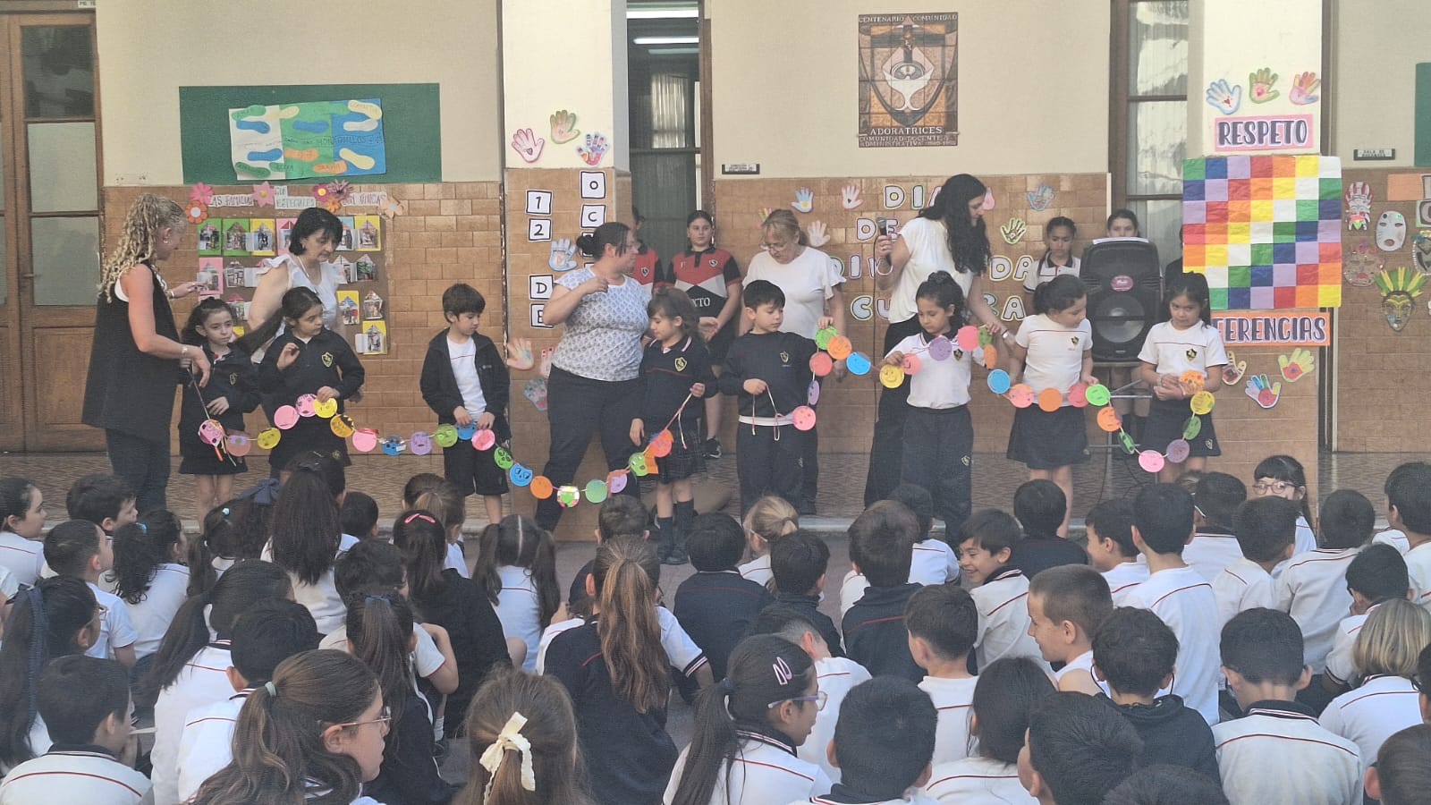 Directivos, docentes, estudiantes y familias de nivel primario se reunieron, en el patio de la Virgen, para conmemorar el 12 de octubre “Día del respeto a la Diversidad Cultural”. Cada grado trabajó en clase con un aspecto alusivo a esta fecha y lo socializó al resto de sus compañeros/as en el acto. “Aprendamos unos de otros y valoremos las diferencias que nos hacen únicos”