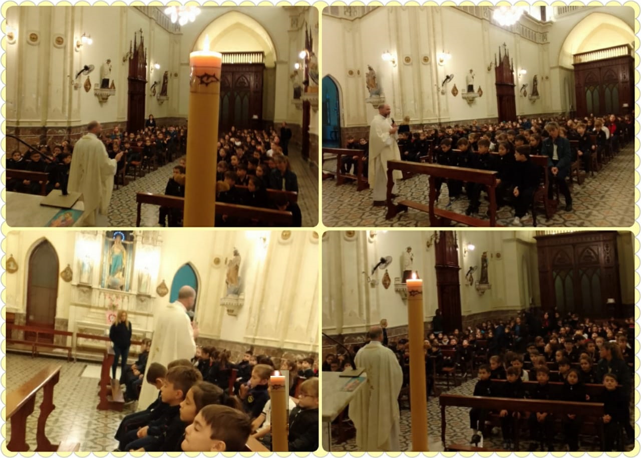 Estudiantes de primer ciclo se reunieron el viernes 19 de mayo, en la capilla del colegio, para escuchar y meditar la Palabra de Dios. Esta celebración fue presidida por el Padre Pablo, quien, en el lenguaje sencillo que entienden los niños/as más pequeños, explicó y dialogó lo que Jesús nos dice a través del Santo Evangelio. Para visualizar un vídeo de estos momentos, haga clic en la opción «Leer más» ubicada al final de este artículo, gracias.