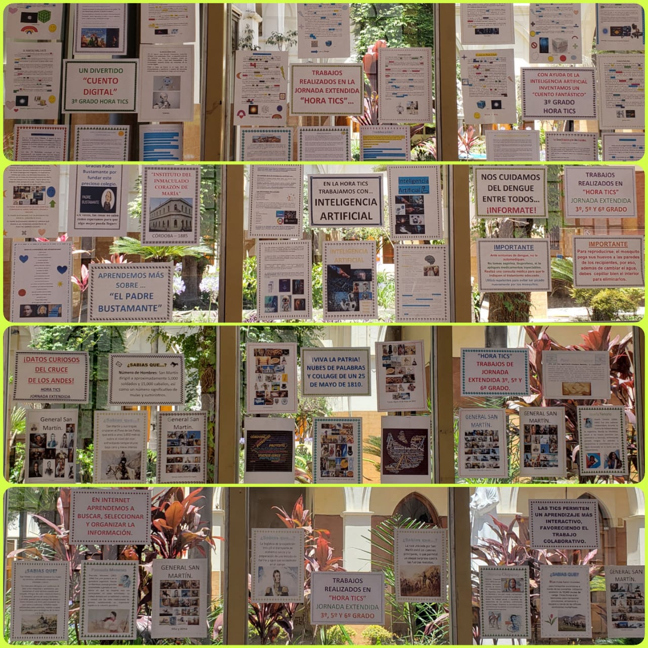 Durante el presente ciclo lectivo, en la «Hora Tics» de Jornada Extendida, estudiantes de tercer, quinto y sexto grado, acompañados por la Srta Graciela, abordaron distintas temáticas como «Nos cuidamos del Dengue», «Padre Bustamante», «El sentir patrio», «Cuentos», «La Virgen María», «Las Casas Adoratrices», «Plantas medicinales y aromáticas», «Mujeres Argentinas», entre otras; y con ellas incorporaron el uso de diferentes herramientas digitales. De esta manera confeccionaron collage de imagenes y nube de palabras, procesaron textos, realizaron presentaciones multimedias, se iniciaron en el ámbito de la inteligencia artificial aprendiendo la redacción de «prompts», diseñaron infografías y utilizaron buscadores en Internet para buscar, seleccionar y organizar la información que necesitaban para desarrollar los diferentes contenidos y aprendizajes. ¡Fueron clases intensas e impregnadas de un buen trabajo colaborativo entre pares. ¡Felicitaciones chicos/as por su desempeño!. Socializamos con las familias algunas producciones realizadas, las mismas están expuestas en la galería del colegio.