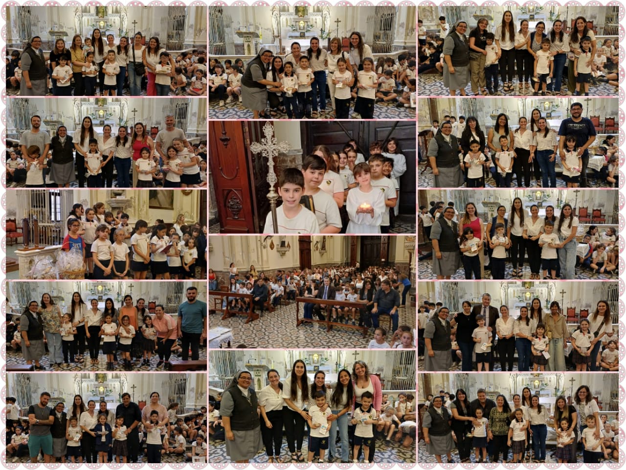 En una hermosa celebración compartida en la iglesia, junto a la Hermana Rosita y las docentes, niños/as de primer grado recibieron al «Niño Jesús», mientras que los estudiantes que participaron este año del grupo de Monaguillos y del grupo M.E.I. recibieron una medalla como recuerdo de todo lo vivido.