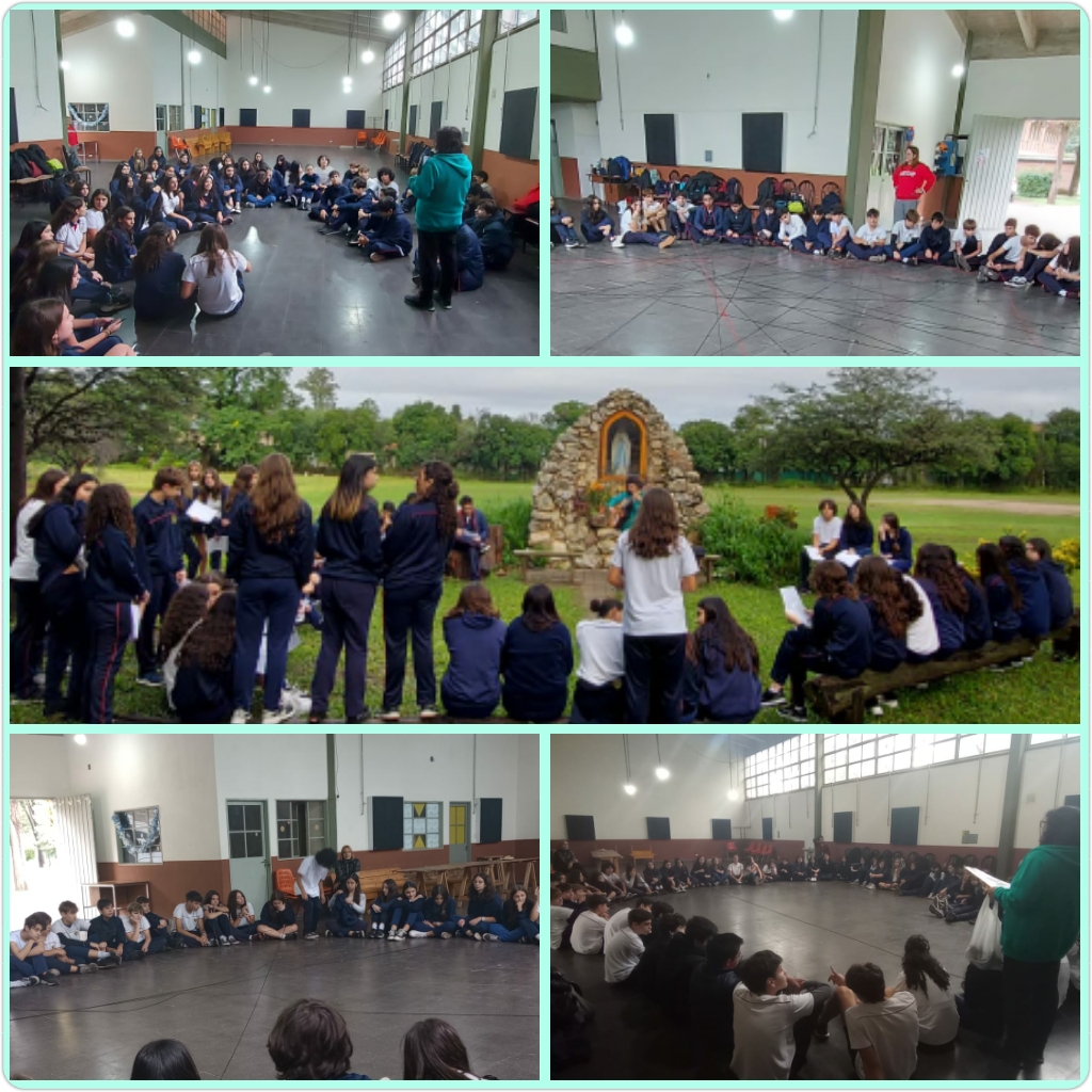 Estudiantes de 3º año participaron hoy de un encuentro en el cual realizaron diversas dinámicas de trabajo y vivenciaron un momento diferente junto a su grupo de compañeros/as.. De la mano de sus profesores de Formación Cristiana y otras asignaturas, lograron compartir un espacio único que llevarán consigo como fuente de riqueza de sus vínculos.