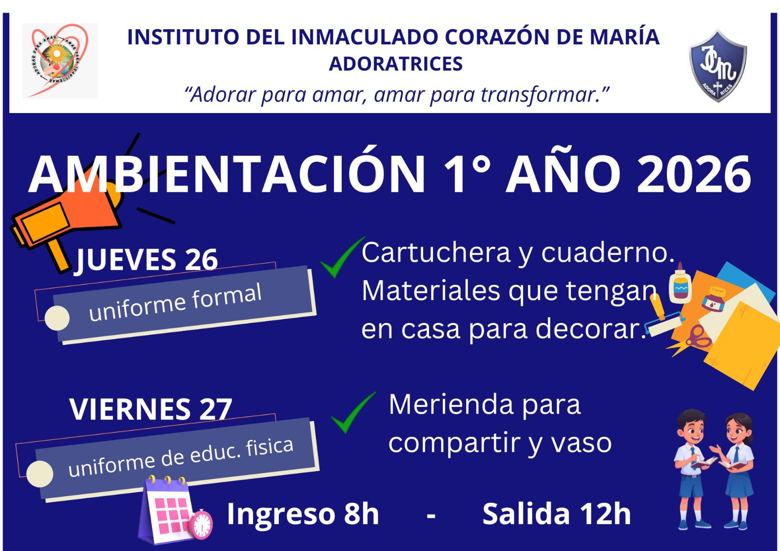 Compartimos con las familias y los estudiantes un flyer con toda la información necesaria referente al Período de Ambientación. Leer con atención. Muchas gracias.